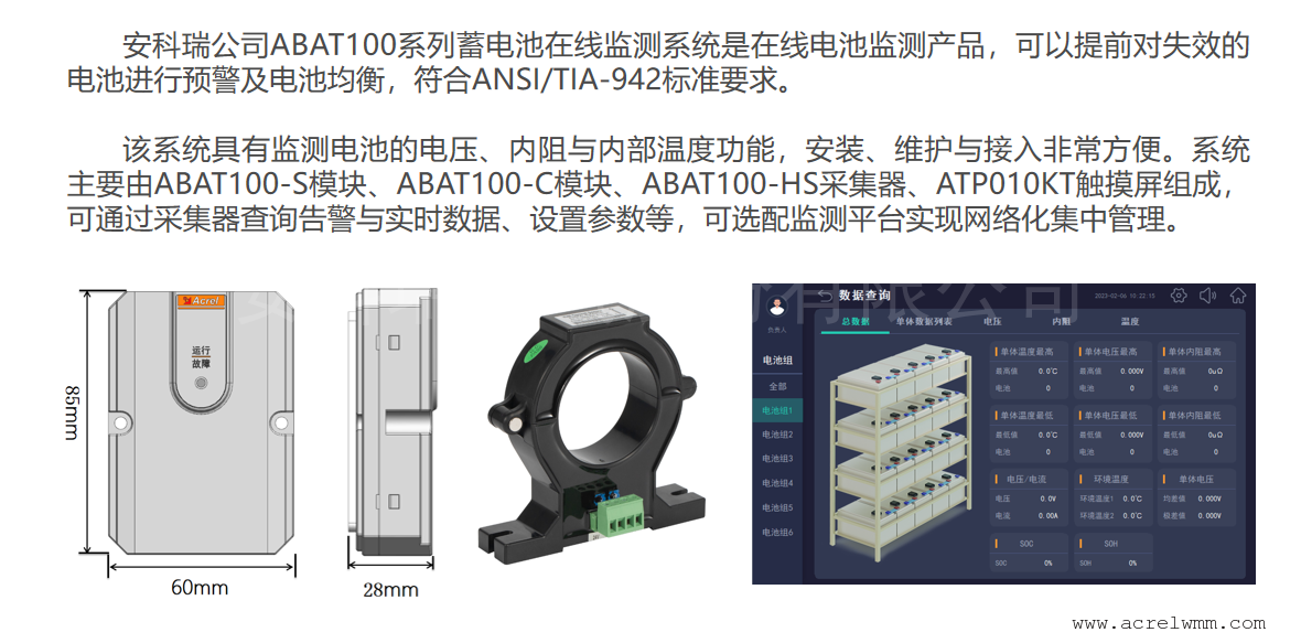 安科瑞蓄电池在线监控系统通过对蓄电池系统科学的运维管理,监测维护,及时发现故障隐患,从而客观上延长蓄电池的使用寿命,保障供电安全,降低总体拥有成本。