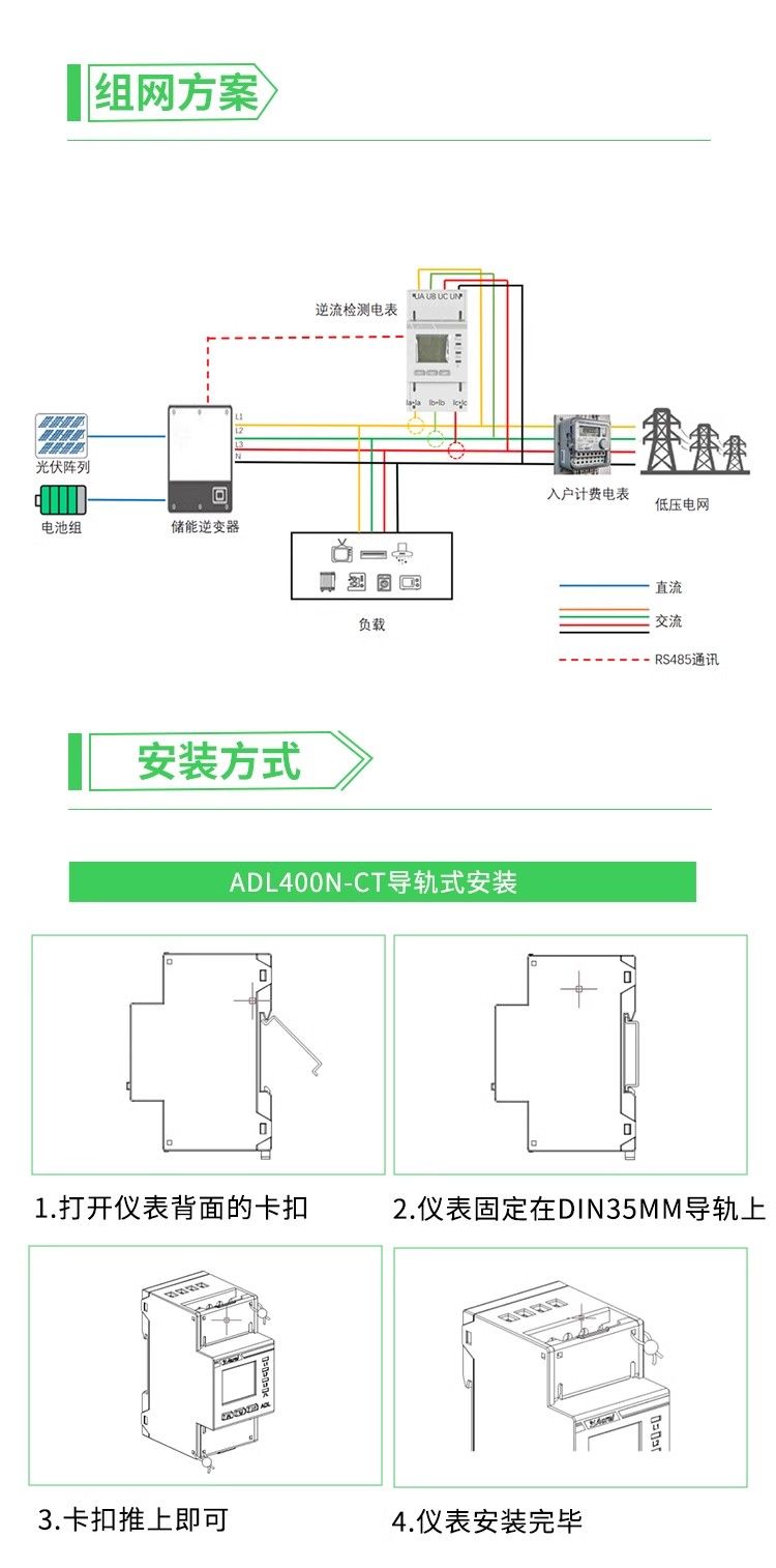 安科瑞光伏检测储能计量表防逆流表双向计量带UL认证ADL200N-CT