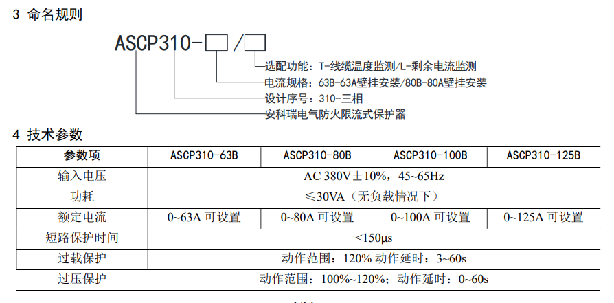 电气防火限流式保护器可有效克服传统断路器、空气开关和监控设备存在的短路电流大、切断短路电 流时间长、短路时产生的电弧火花大,以及使用寿命短等弊端,发生短路故障时,能以微秒级速度快速限 制短路电流以实现灭弧保护,从而能显著减少电气火灾事故,保障使用场所人员和财产的安全。 ASCP310 系列电气防火限流式保护器是三相限流式保护器,主要应用于电动汽车充电站的线路保护。